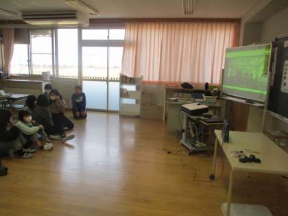 寒江小学校からは「以心伝心ゲーム」を、老田小学校からは「何が通ったでしょうゲーム」と「ジェスチャーゲーム」を行いました。