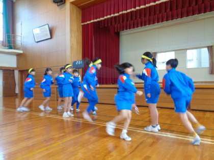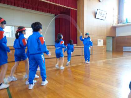 2月14日(水) 4年生 なわとび大会 公開日 2024/02/14 更新日 2024/02/14 4年生 なわとび大会「8の字跳びの部」では、3分間ひかからずに続けて跳ぶことを目標に練習してきた成果を発揮することができました。記録は、紫チーム304回、緑チーム286回でした。個人の部でも、最高記録をめざし1分間跳び続けることをがんばりました。