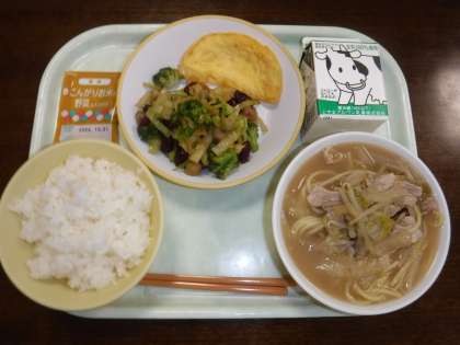 今朝、献立を見て、わくわくしていた子供たち。「おー、豪華だなあ」と声を挙げていました。学校で食べるラーメンは格別ですね。今日は、具だくさんで濃厚なスープの豚骨ラーメンをいただきました。