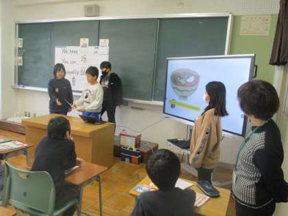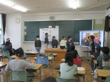 5年生 外国語科の授業で… 公開日 2024/02/20 更新日 2024/02/20 5年生 外国語科の授業では、来日して間もないALTの先生に日本の行事について、英語でプレゼンテーションをしました。 七草粥、節分、ひな祭り、子供の日、大晦日について説明をしました。ALTの先生のことを考えて、ジェスチャーをいれたり写真を使って説明したりと工夫をしたので、とてもわかりやすいプレゼンとなりました。