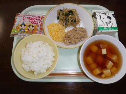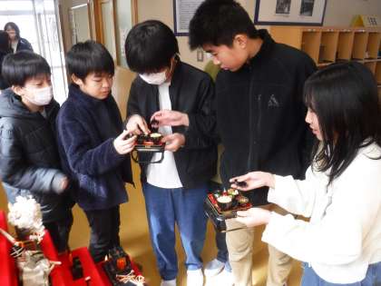 廊下にお雛様が飾ってあり、子供たちは、給食の献立とお内裏様やお姫様のご膳と比べていました。