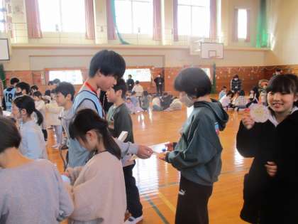 2月26日(月)から3月1日(金)まで卒業を祝うウィークでした。各学年と6年生がいきいきタイムに遊んだり、5年生が中心となってお昼の放送で6年生特集をしたりしました。