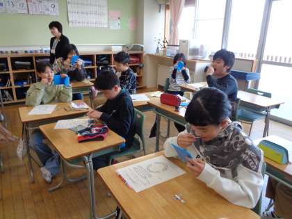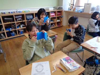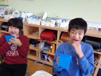 保健では虫歯・歯周病の予防について学習しています。今日は養護教諭と一緒に自分の日頃の歯磨きをチェックしました。毎日しっかり磨いているつもりでも、磨き残している部分があることを知り、給食後はより丁寧に磨いていました。