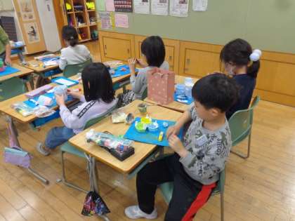 図工の時間に紙粘土を使ってオリジナルケースを作成しました。カラフルな色にしたり、動物をモチーフにして作ったりと、それぞれ素敵な作品ができました。