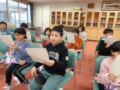 子供たちは真剣に相手に伝わる話し方のポイントを聞いていました。来年度から始まる委員会活動を見据え、放送したり全校に伝えたりするときに生かそうとしていました。