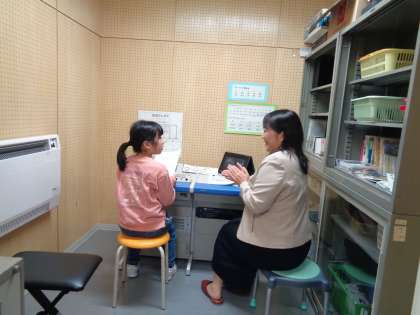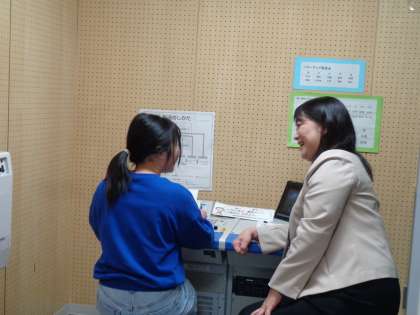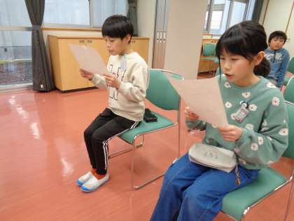 一人一人がマイクに向かって原稿を読み、アドバイスをして頂きました。子供たちは自分のよさと更によくなるポイントを教えてもらい、また何度も練習を繰り返していました。