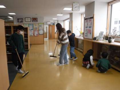 今日の掃除は、たてわり班の子供たちの心もようが見えるようでした。