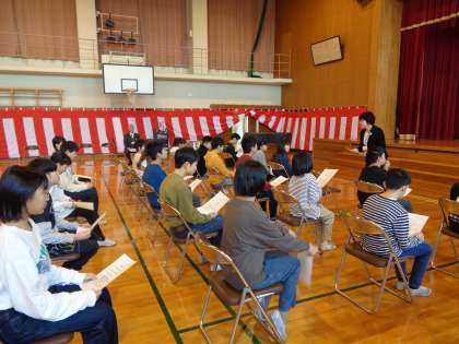 卒業する6年生に校長先生から4つのお話と素敵な詩を紹介していただきました。主人公は自分自身、6年生にはその言葉がとても響いたようで、噛みしめていました。