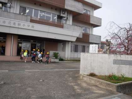 登校班の上級生に見守られながら、1年生も元気に集団登校をしてきました。地域の見守り隊の方々、PTAの皆さん、交通指導員の方も、老田っ子の登校を見守ってくださいました。「おはようございます!」という元気な挨拶に、やる気が感じられます。
