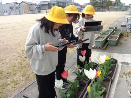 理科の学習では、あたたかくなると自然の様子がどのように変わるか調べています。