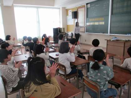 また、今日は外国語や音楽の学習がありました。外国語はALTと教務主任の先生、音楽は専科教員が担当します。子供たちはいきいきと活動していました。