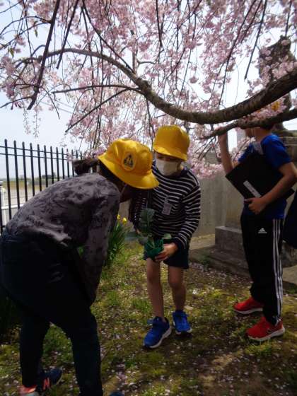 理科の学習では、ホウセンカやヒマワリを育てたり、モンシロチョウの卵を採集したりしています。
