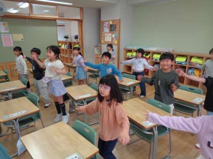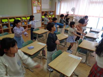 運動会で踊る「遺伝子ダンス」を教室でも練習中です。だんだん上手に踊れるようになってきました。