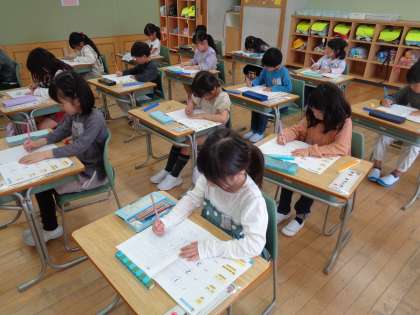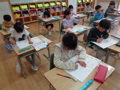 4月16日(火)1年生 算数の学習 公開日 2024/04/16 更新日 2024/04/16 1年生 算数では、「なかまづくりとかず」の学習をしています。ブロックで数を確かめたり、丁寧に数字を書いたりと、真剣な1年生でした。