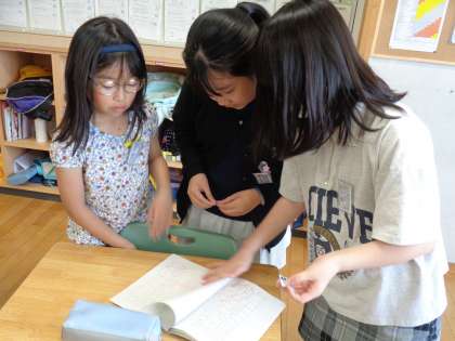友達の自主学習ノートを見て、参考にしたいところやすてきなところを見付けました。毎日進んで自主学習に励んでいる4年生です。