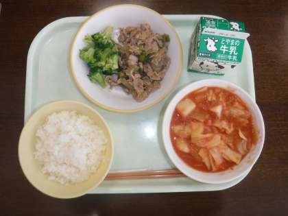 4月19日(金)今日の給食 公開日 2024/04/19 更新日 2024/04/19 本日の給食 今日の給食の献立は、ごはん、牛乳、ポークソテー、ゆでブロッコリー、白インゲン豆のトマト煮でした。 白インゲン豆のトマト煮は、ジャガイモがほくほくになるまで煮込んでありました。トマトの酸味が優しく、とてもおいしかったです。