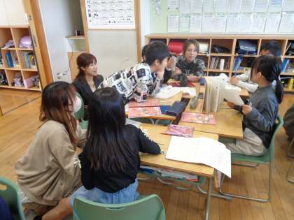 『「あ」で始まるあまい食べ物』『勉強道具』『公園にある遊具』等のテーマに沿って、思い浮かべた言葉を友達に説明し、答えがばらばらになるように力を合わせました。人数を増やしていき、最後は家の人と一緒に挑戦しました。伝える楽しさや難しさを感じていたようでした。