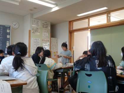 国語科「伝わるかな、好きな食べ物」を行いました。食べ物の名前を出さずに文章を書き、友達にクイズ形式で提示しました。たとえの表現を使いながら文章を書くことができました。正解不正解で盛り上がっていました。