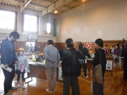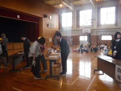 学習参観、PTA総会、学級懇談会の後、非常時を想定した引き渡し訓練を行いました。引き渡し時の保護者の方々の動き、受付での対応の仕方を確認していただきました。