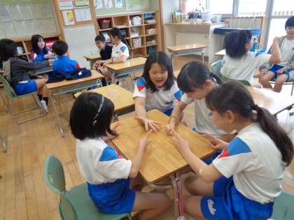 今日のふれあいタイムは「あいこジャンケン」を行いました。5回連続でジャンケンをし、何回あいこになったかを数えました。担任→ペア→グループと相手を変え、5回連続あいこを目指しました。気持ちが揃うとにっこり笑顔になっていました。