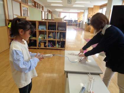 理科の学習では、体を動かすときの筋肉や骨の動きを確かめました。