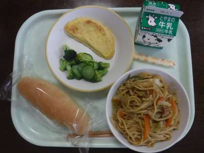 4月24日(水)今日の給食 公開日 2024/04/24 更新日 2024/04/24 本日の給食 今日の給食の献立は、コッペパン、牛乳、オムレツ、ドレッシングサラダ、焼きそば、棒チーズでした。自分で「焼きそばパン」を作って食べている子供がたくさんいました。