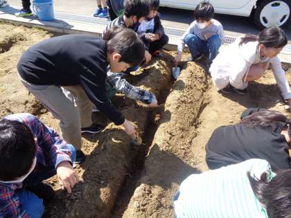 4月25日(木)6年生 理科 種芋植え 公開日 2024/04/25 更新日 2024/04/25 6年生 理科の実験で使うじゃがいもの種芋を植えました。生長に合わせた世話を行ったり、実験で活用したりしていきます。