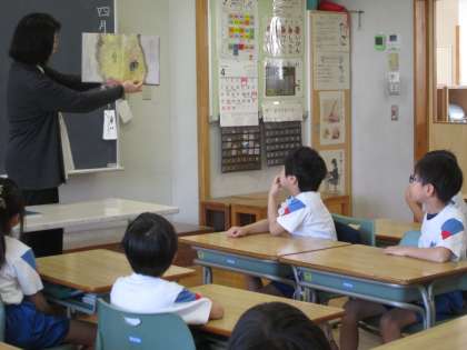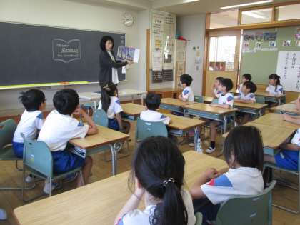 今年度も読み聞かせボランティアの方が、子供たちに本を紹介してくださっています。子供たちは「え!?」「どうして?」とお話の世界に浸りながら聞いていました。