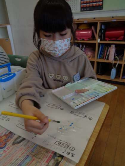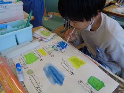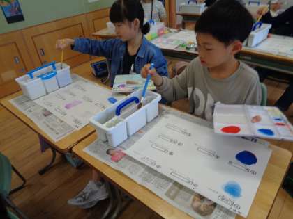 「絵の具+筆+水=いい感じ!」の学習では、水彩画の技法を学びました。