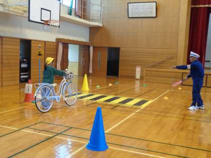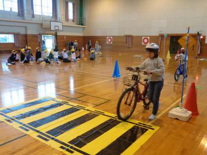 踏切や横断歩道を渡るときに注意することや、「二段階右折」「二段階停止」を教えていただきました。