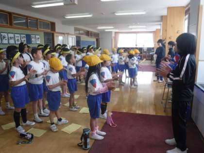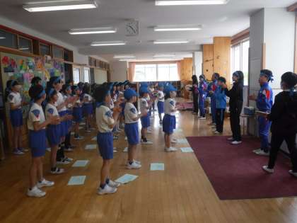 いきいきタイムに、全校で応援練習を行いました。どの団もよく声が出ており、まとまってきました。学校中に気合いの入った声が響いていました。