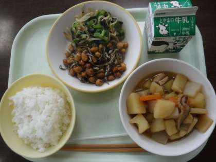 5月2日(木)今日の給食 公開日 2024/05/02 更新日 2024/05/02 本日の給食 今日の給食の献立は、ごはん、牛乳、小魚入りフライビーンズ、しょうがひたし、南蛮煮 でした。小魚フライビーンズには、「かえり煮干し」が使われています。「かえり煮干し」の原料は、カタクチイワシの稚魚である「かえりいわし」だそうです。カルシウムがたくさんとれそうなメニューですね。