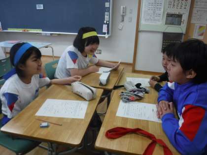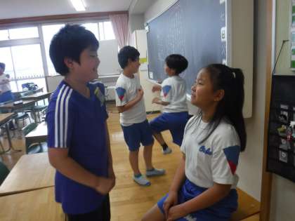 5月7日(火)ふれいあいタイム 公開日 2024/05/07 更新日 2024/05/07 今日のひとコマ 毎週火曜日の朝活動は「ふれあいタイム」とし、各学級でコミュニケーションゲームを行っています。友達と連休中の過ごし方を伝え合ったり、「無人島で必要なものは?」というお題についてグループで考えを出し合ったりしていました。