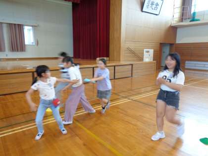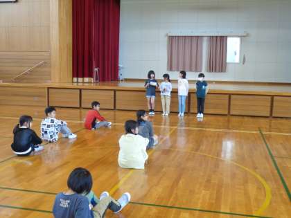 先月から係の仕事(ミニミニ委員会)が始まり、今回は『楽しいミニミニ運動委員会』が企画した、4年生運動会を行いました。