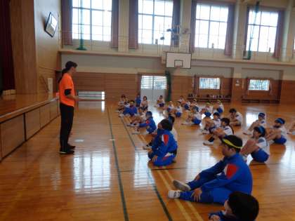 短距離走のスペシャリストをお招きして、走るこつについて教えていただきました。体を大きく動かすことや体重移動を意識すること等、普段、走るときに意識をしていないことばかりでした。今回の経験を生かして、運動会に取り組みたいです。