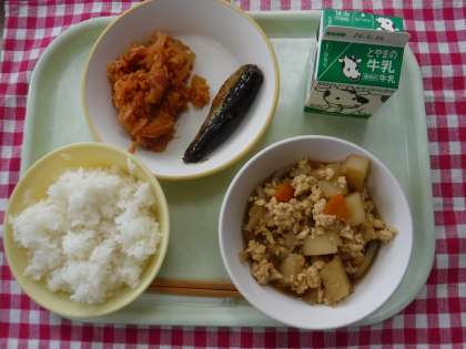 5月9日(木)今日の給食 公開日 2024/05/09 更新日 2024/05/09 今日のひとコマ 今日の給食の献立は、ごはん、牛乳、切り干し大根のケチャップ炒め、いわしのしょうが味、卵とじ でした。普段は醤油等、和風の味付けで調理される切り干し大根ですが、今日はケチャップを使った洋風の味付けです。ひと味違ったおいしさでした。
