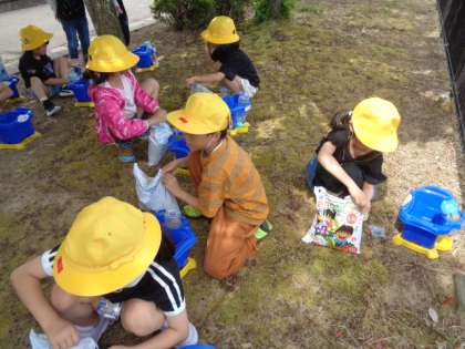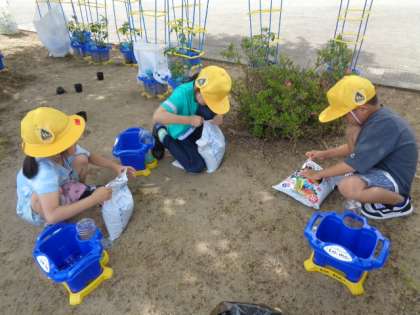 1年生は、生活科の学習で、あさがおの種まきをしました。子供たちは「おおきくなあれ」と言いながら土に肥料を混ぜたり、水をあげたりしていました。