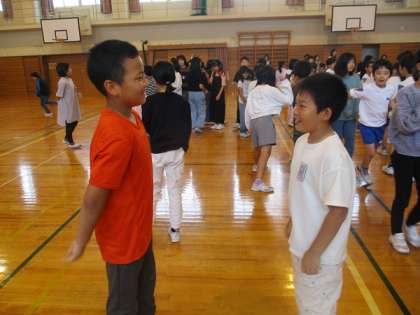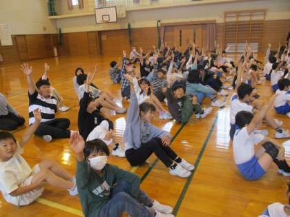 今日は全校集会がありました。受賞伝達やぐんぐんウィークでがんばっていることの紹介、全校ふれあいタイムがありました。ふれあいタイムではいろんな学年の友達と交流していました。