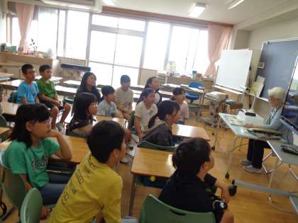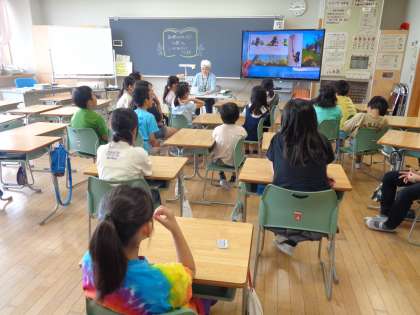 4年生は、プロジェクターに大きく映し出された絵本を見て、物語の世界に浸っていました。