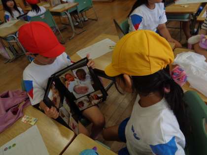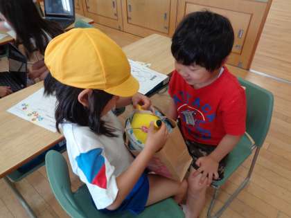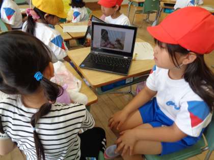 国語科「わけをはなそう」では、わけを伝える言葉を使って、自分の宝物を伝え合う活動を行いました。「実物、クロムブックで撮った写真、絵」の中から紹介の仕方を自分で選び、それを見せながら宝物について伝え合いました。「かわいいね。」「かっこいいね。」「とっても大切なんだね。」という声もあちこちで聞かれ、とても嬉しそうに活動する1年生でした。