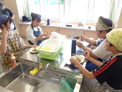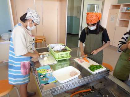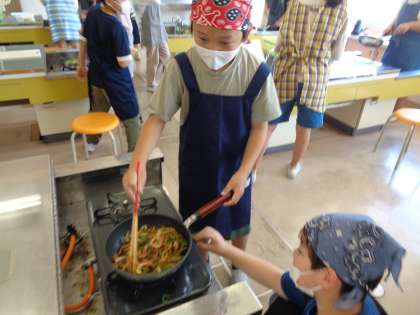 家庭科の学習で、炒める調理実習を行いました。切り方、炒める順番、火加減をポイントにして炒めました。さすが6年生、てきぱきと役割を分担して、調理できました。