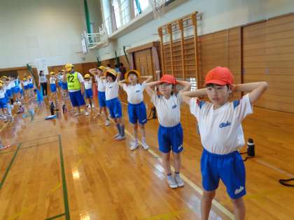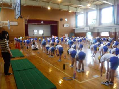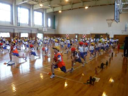全校で準備体操をしました。自分の目当達成に向けてやる気いっぱいでした。