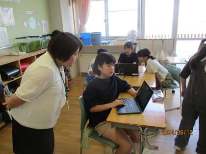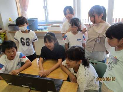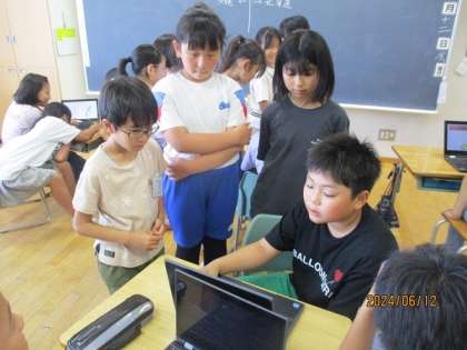 今日は社会科の学習で調べていた「暖かい地域」と「寒い地域」のくらしについてまとめたことを4年生に発表しました。4年生は「台風にも耐えられる丈夫な家がある沖縄がいい」や「海鮮がおいしい北海道がいい」など、様々な理由でどちらに住みたいのか決めていました。校長先生や教務の先生が来られても、積極的に声をかけていた5年生。「聞いてほしい」という思いが伝わってきました。