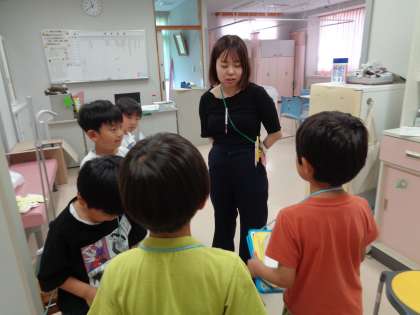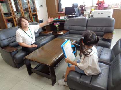 生活科では、朝顔のお世話や観察でお休みしていた、学校探検の学習を行いました。もっと学校のことを詳しく知るために、先生方にインタビューをする活動です。緊張しながらも、聞きたいことをインタビューできて、満足げな子供たちでした。