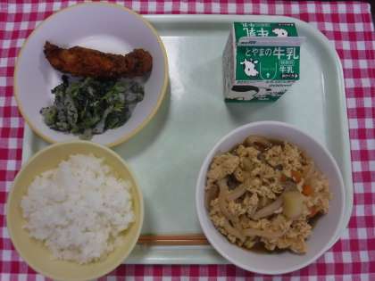 6月14日(金)今日の給食 公開日 2024/06/14 更新日 2024/06/14 本日の給食 今日の給食の献立は、ごはん、牛乳、魚の竜田揚げ、よごし、卵とじ でした。 「よごし」は、ゆでた野菜を細かく刻み、味噌と和えて炒めた郷土料理です。夜に作り置きをして翌朝に食べたことから、「夜越し」の意味で「よごし」と呼ばれるようになったそうです。