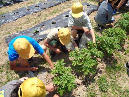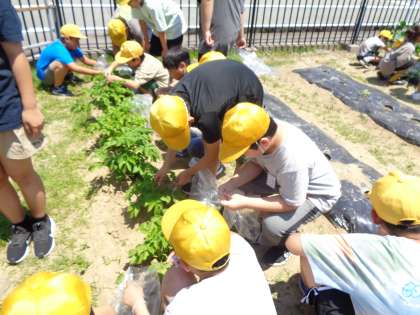 6月14日(金)6年生 理科 蒸散 公開日 2024/06/14 更新日 2024/06/14 6年生 根から吸い上げられた水は、葉まで行ってどこにいくのか、育てているじゃがいもを使って実験しました。葉から水蒸気として空気中に出て行くことが分かりました。