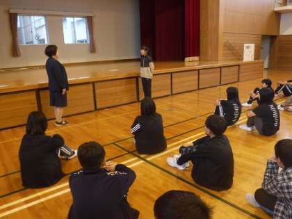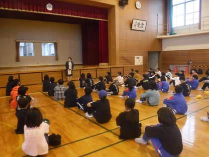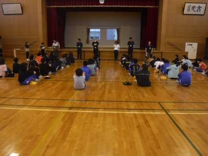 5、6年生は、18、19日と1泊2日で国立立山青少年自然の家に宿泊学習に行ってきます。まず、体育館で出発式を行いました。式に臨む姿勢や挨拶から、やる気と楽しみな気持ちが伝わってきました。