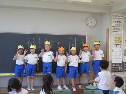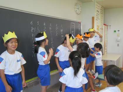 ダンスをしたり、鬼ごっこやなわとび対決をしたり、全員が楽しんでいました。また誕生日の友達に王冠のプレゼントを渡していました。もらった友達はとても嬉しそうでした。