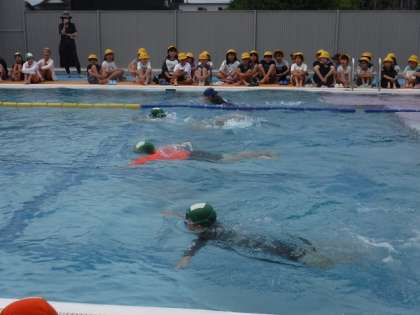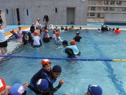今日はプール開きがありました。5年生は2年生と、6年生は1年生とバディを組み、下級生が楽しくプールに入れるように考えて動いてくれました。中には、プールでおんぶやだっこをしてくれる5,6年生もおり、みんな笑顔のプール開きになりました。