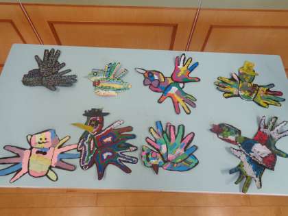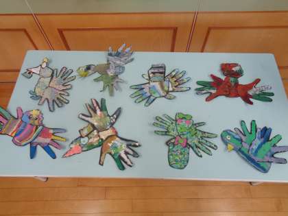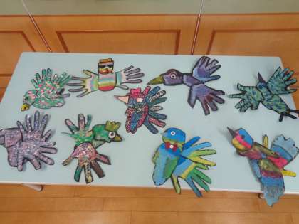 形を組み合わせて、個性溢れる「色とり鳥」の完成です。